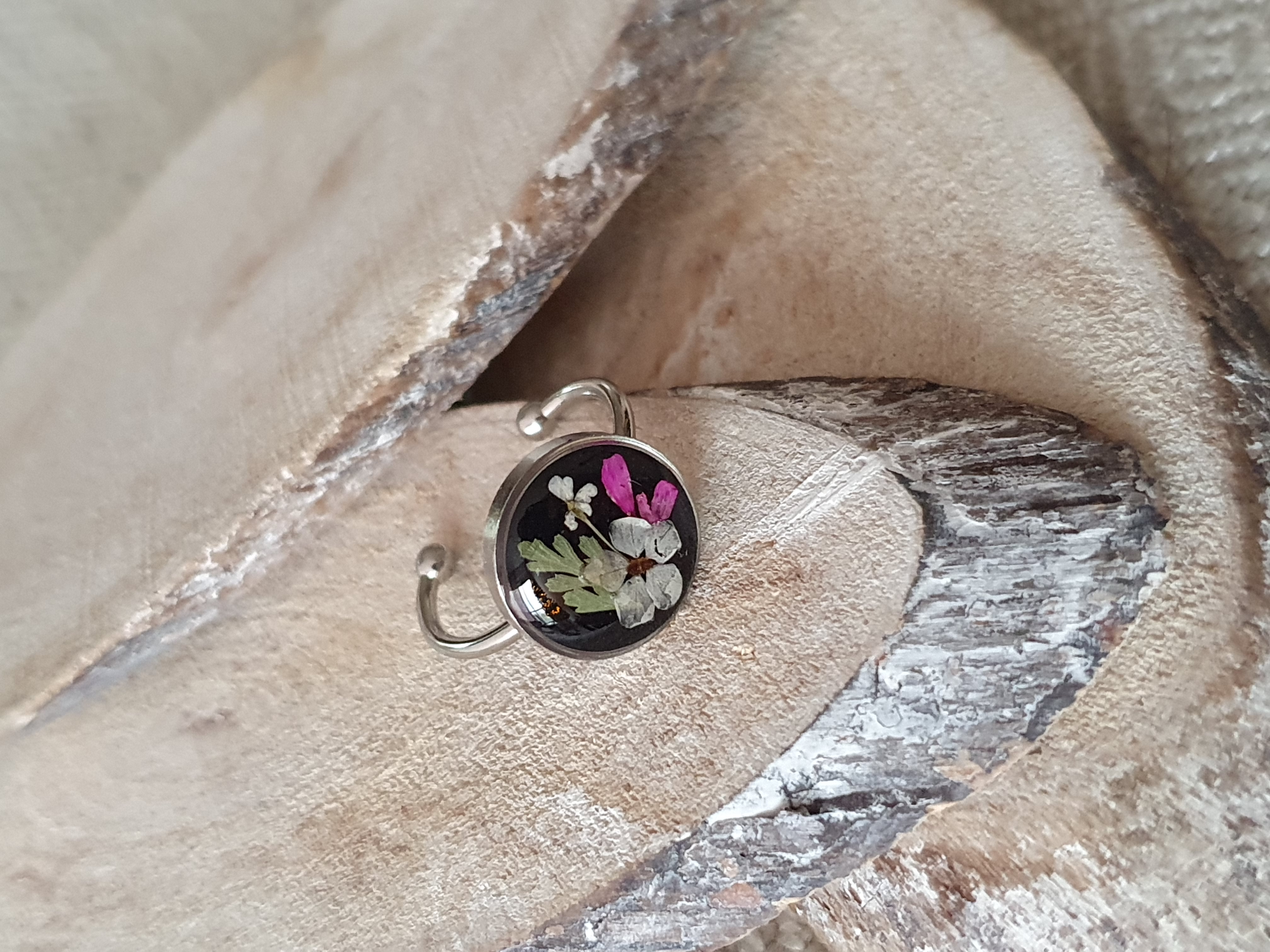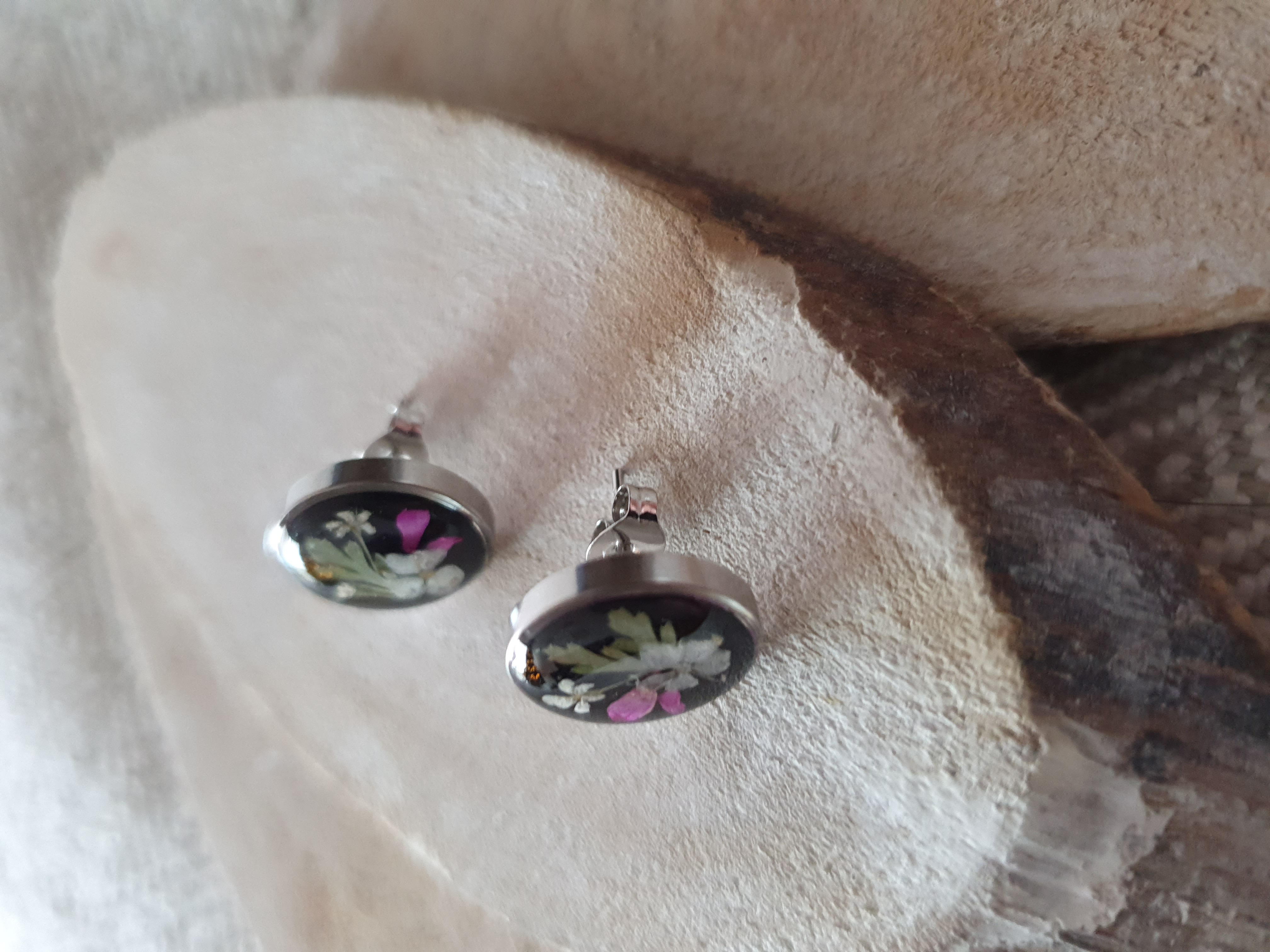 Stud earrings & small ring with natural dried flowers.