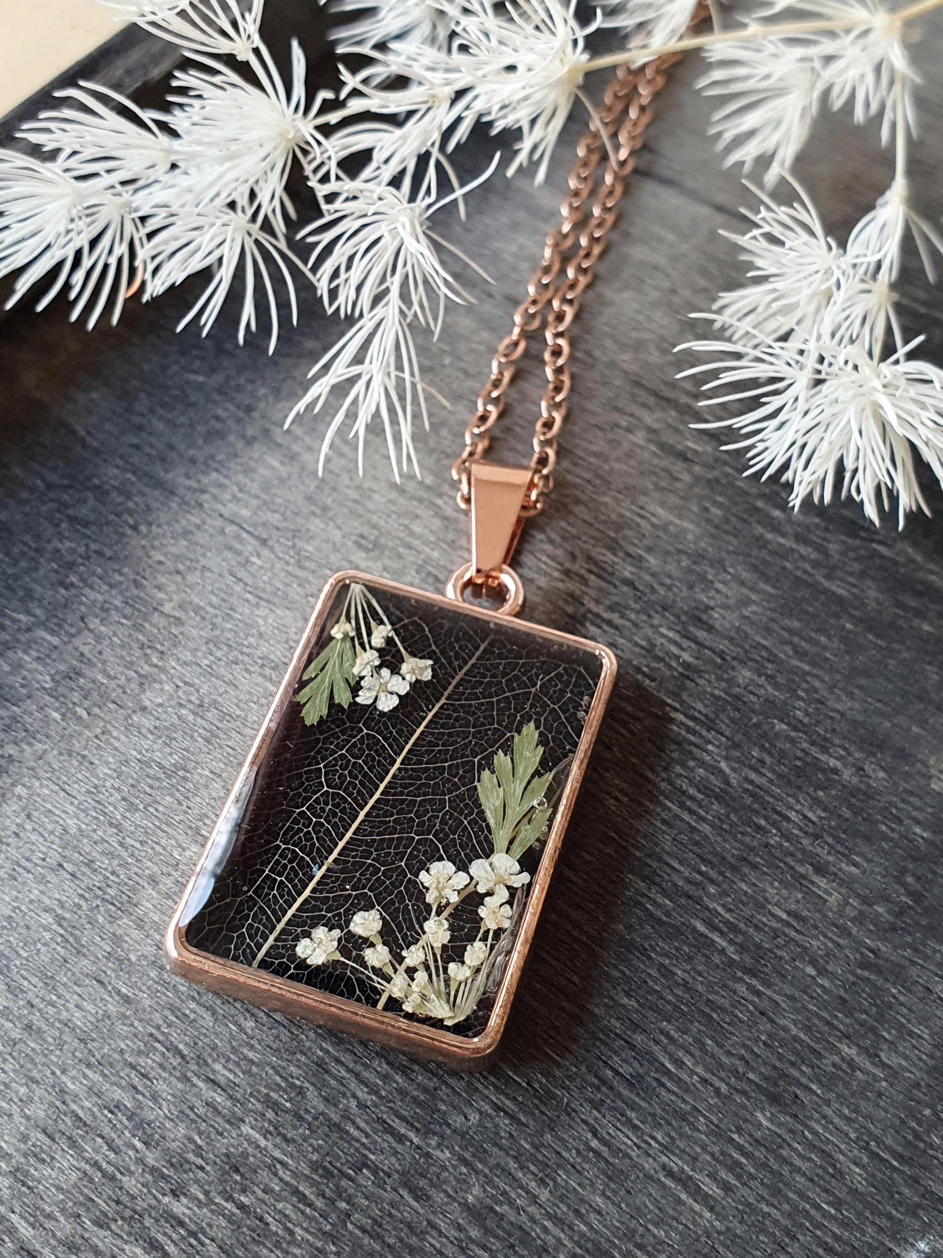 Layer-friendly necklace with botanical detail.